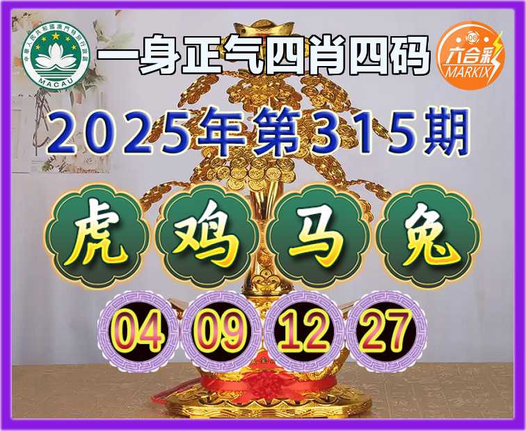 315期:《一身正气》 🍗四肖四码🍗【鸡马兔】【04.09.12.27】开:虎04