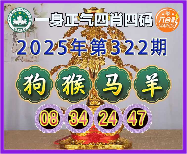 322期:《一身正气》 🍗四肖四码🍗【狗猴马】【08.34.24.47】开:羊47