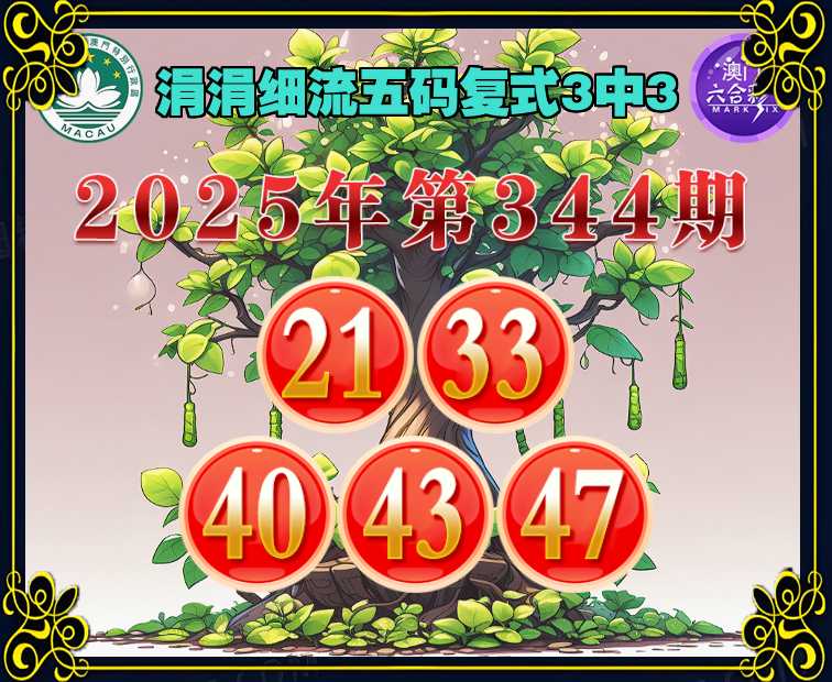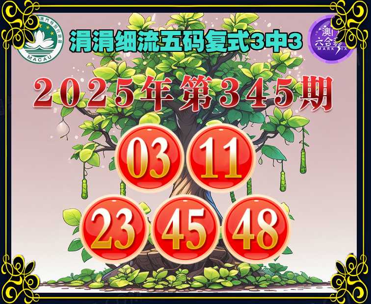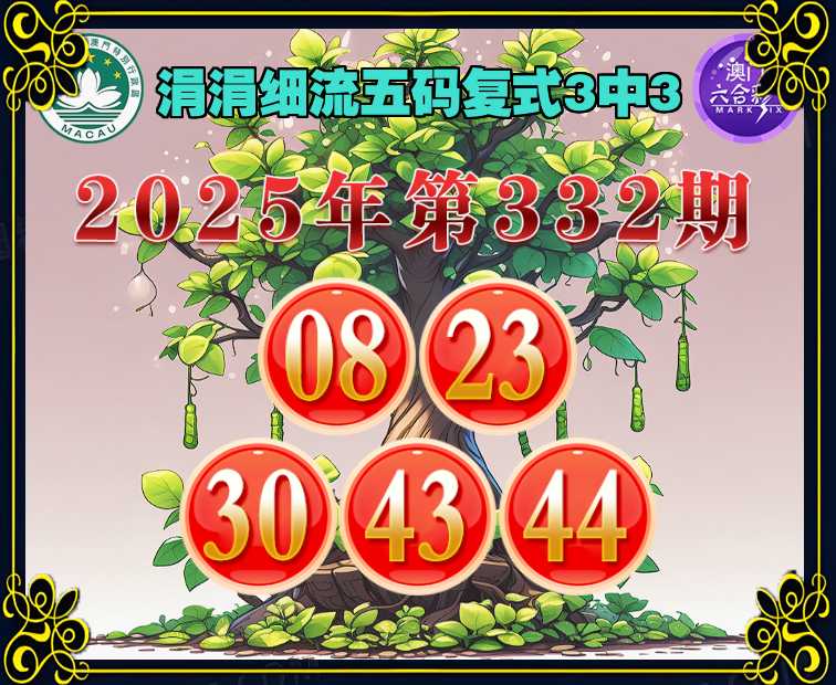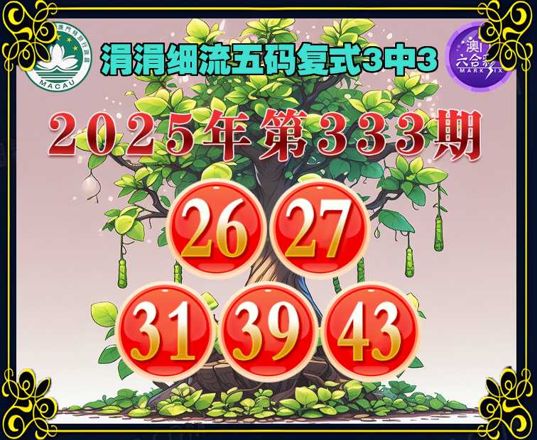 333期:《涓涓细流》 ⛩️五码复式3中3⛩️