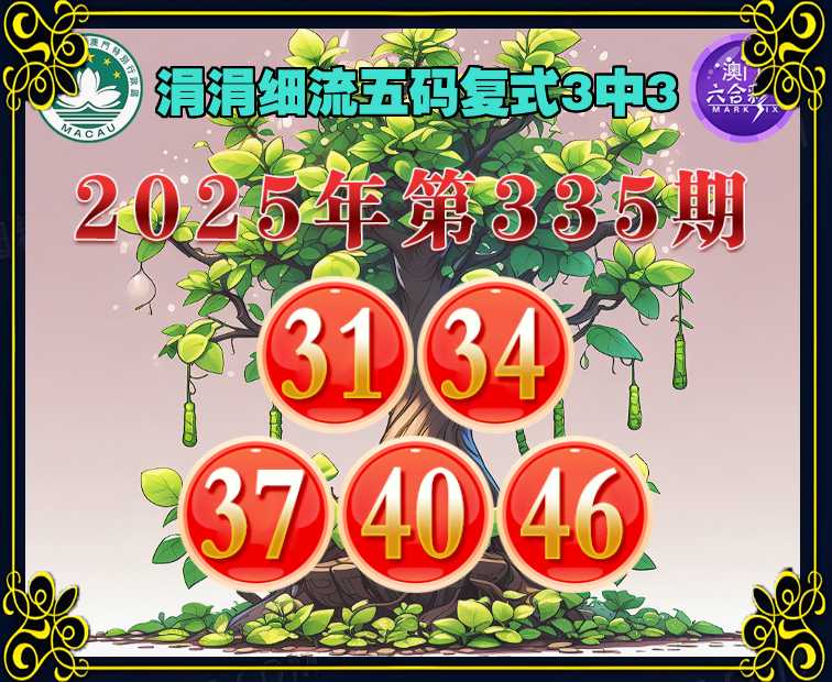335期:《涓涓细流》 ⛩️五码复式3中3⛩️