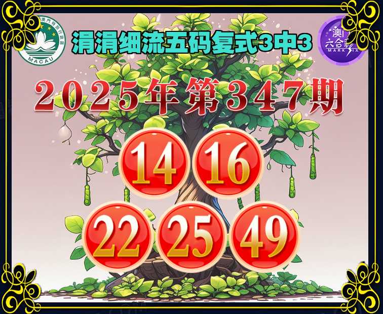 347期:《涓涓细流》 ⛩️五码复式3中3⛩️