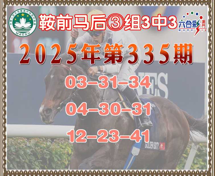335期: ♠️《鞍前马后》 ♠️③组3中3♠️
