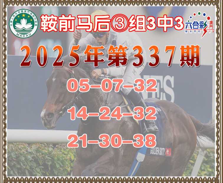 337期: ♠️《鞍前马后》 ♠️③组3中3♠️