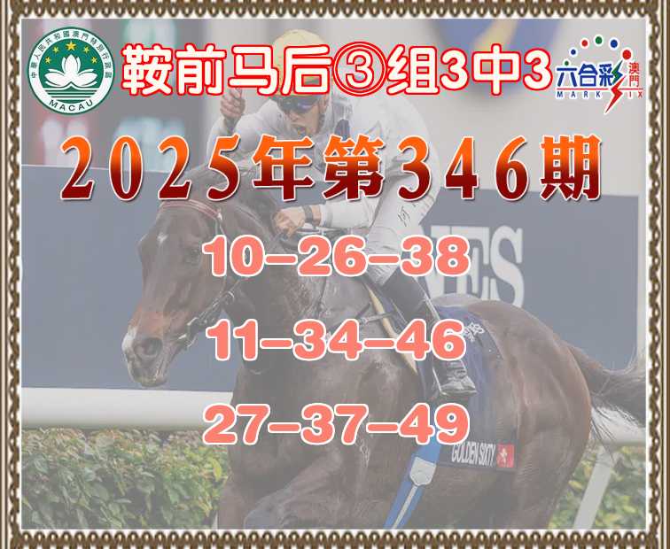 346期: ♠️《鞍前马后》 ♠️③组3中3♠️