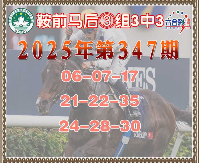 347期: ♠️《鞍前马后》 ♠️③组3中3♠️